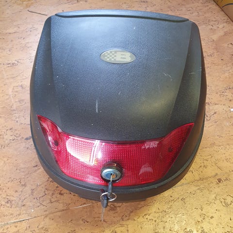 Pent brukt oppbevarings boks med to nøkler.