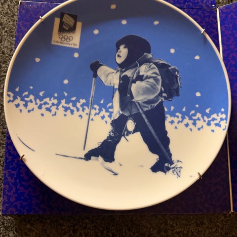 Lillehammer 94 "Official Olympic Mug" i keramikk, blå farge med offisielt Lillehammer 94 OL-logo og IBM som samarbeidspartner. Koppen har et tradisjonelt design og er produsert i Norge.