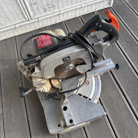 AEG kapp- og gjærsag med stativ selges. Den kutter dessverre ikke helt presist, men det kan kanskje fikses med litt justering