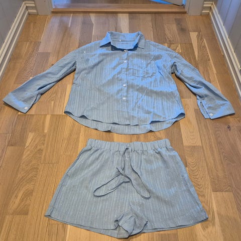 Cardigan str L, Shorts str xl, litt liten i str så valgte en str opp på den.