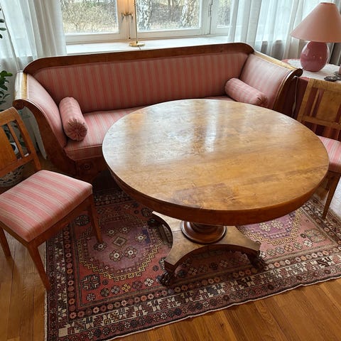 Har to to sett, altså til to stoler. Har også to pynteputer som følger med. Jeg klarte å ødelegge glidelåsen på den ene, mulig det er lett å få reparert. Synes ikke under bruk. Ellers er disse i veldig god stand og fargene er som de en gang har vært. De har nesten ikke blitt brukt siden de ble kjøpt på 80 tallet. Stått i en kjeller. Jeg har nylig vasket trekkene. Selges samlet for 5000.