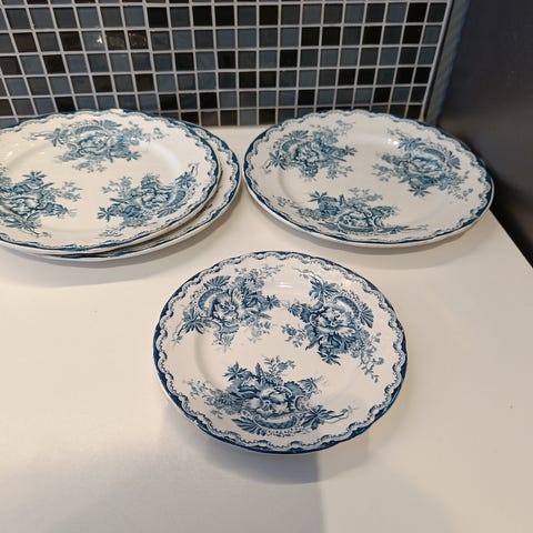 3 stk. 22 cm diameter. Hakk i to av de. Ellers pene. Selges samlet