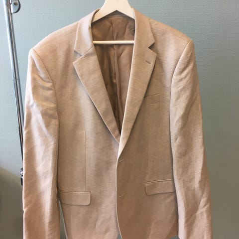 En flott dressjakke, blazer av linblanding fra Dressmann, brukt ett par timer under sommerfesten ,