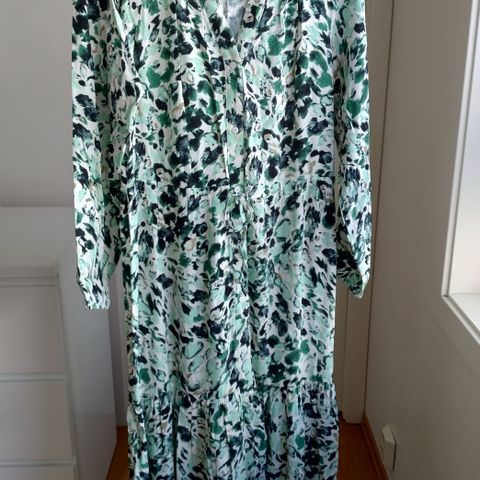 Morsom kjole som ikke er brukt. Hel lengde fra nakken og ned 96 cm. Vidde nederst 160 cm. Mykt fint stoff. Kastet kvitteringe fra butikken, men bare prøvd i butikken.