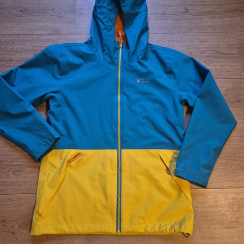 Stoffet ligner på tynn neopren. Varm og god. Perfekt som overgangsjakke mellom sommer/høst og vinter/vår.