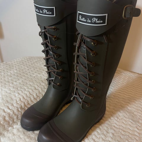 Helt nye høye gummistøvler fra units str 35. Fargen er mørke grønne.