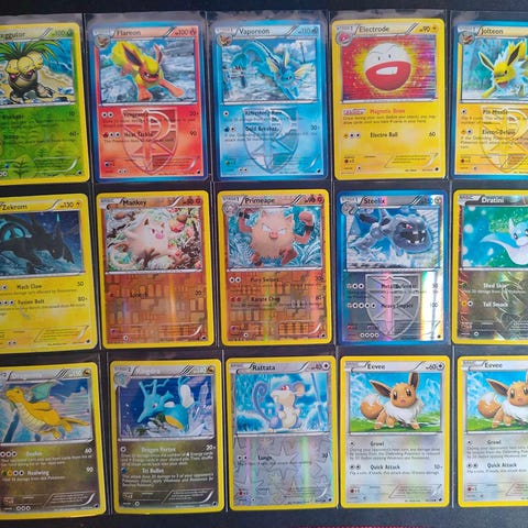 Samling med det jeg tror er alle common og uncommon fra pokemon Black and White serien: Plasma Freeze. 57 forskjellige kort inkludert flere unike eevolutions.