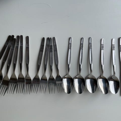 12 stk retro bestikk/skjeer i rustfritt stål. #bestikk#vintage#retro#oppbevaring#kjøkken#diverse, skje,interiør,dekorasjon
