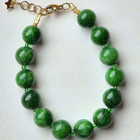 Søkeord: jade, halvedelsteiner, naturmaterialer, naturstein, natursten, armbånd, smykker, perlearmbånd, perler, steinperler