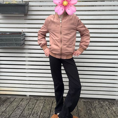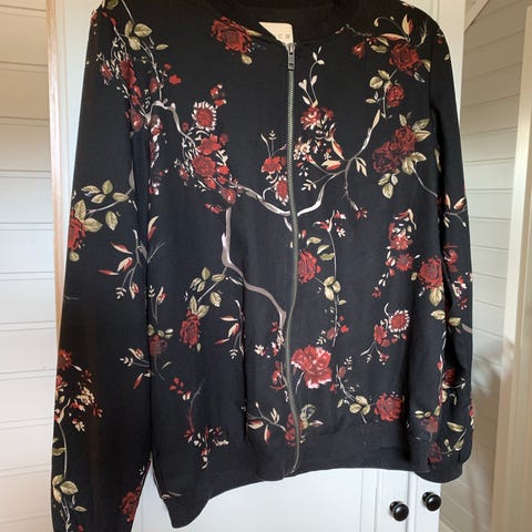 Kul bomberjakke foret med tynt stoff (chiffonaktig). Str XS. Polyester.