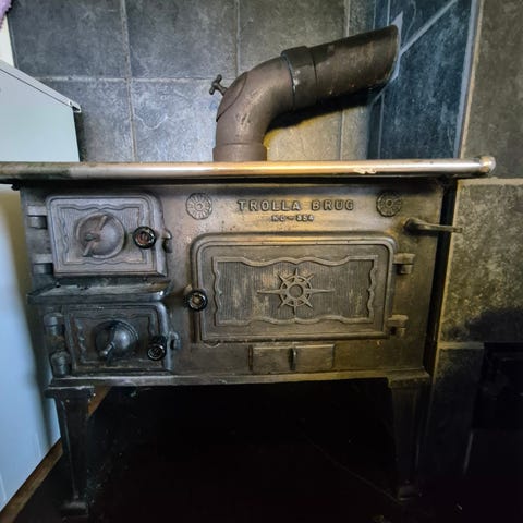 Grei gammel matovn. Varmet opp hus og mat i gamle dager. Litt pussing og lakk så blir den som ny! Flott for et større røykeri eller hagekjøkken, evt for jakthytte! Pris kan diskuteres ved hurtig avgjørelse.