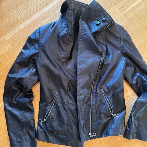 Ene knappen er knekt, ellers fremstår jakken som ubrukt.