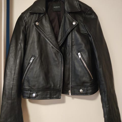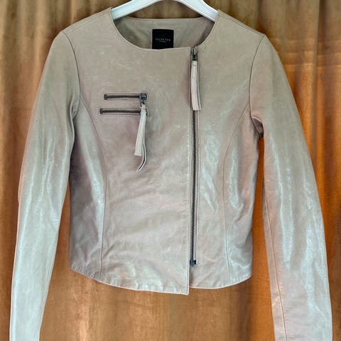 Selected Femme jakke i skinn i nydelig blå farge, størrelse 34.