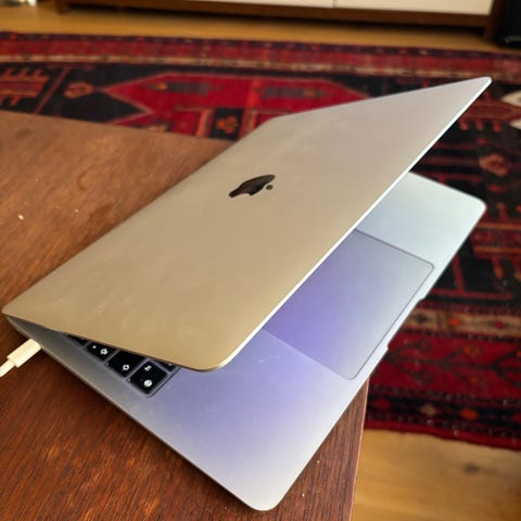 Pent og lite brukt MacBook Air. Kjøpt brukt i 2024 og har funket fint så lenge jeg har hatt den.