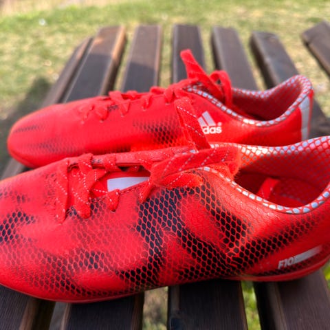 Under Armour fotballsko i størrelse 40, rød farge med blå og grønne detaljer. Laget for fotballbruk med knotter på yttersålen for godt grep på banen. Til naturlig gress.