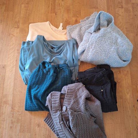 Selger en klespakke med klær i str L og XL. Alle klærne er brukte, men fortsatt fine.