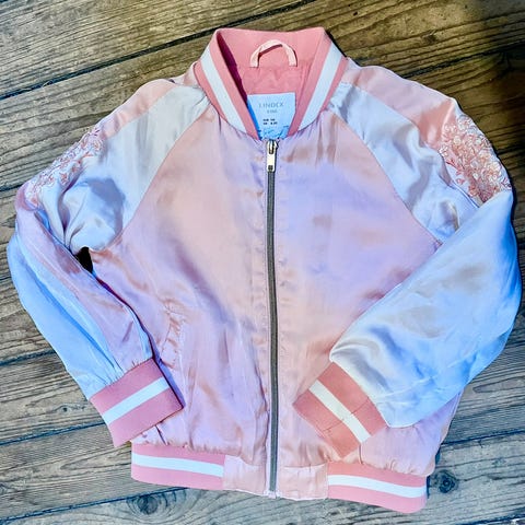 Primark barnejakke i størrelse 110 for jenter. Jakken har et flerfarget leopardmønster og er utstyrt med hette. Den har glidelås foran og to lommer. Materialet er mykt og egnet for barn.