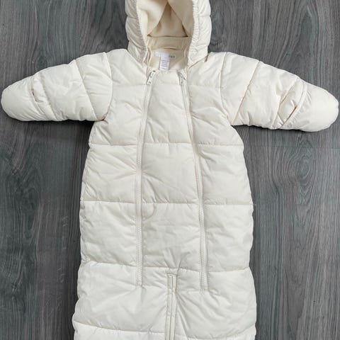 Med hette og votter - perfekt for kalde dager i vogn eller bilstol.