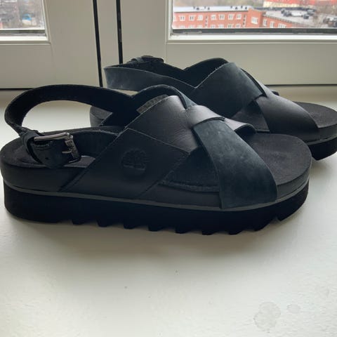 Timberland sandaler i størrelse 38, designet for damebruk. Sandalene har svart farge og er laget med solide materialer for komfort og holdbarhet. Passer til bruk i varme værforhold. Sandalene er svært lite brukt og i veldig god stand. Kjøpt nye, brukt kun et par ganger.