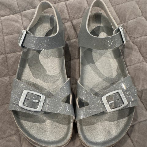 NYE Scholl bronse sandaler str. 39 m/pynt. Noe elastiske i reimen på innsiden og sorte gummisåler.