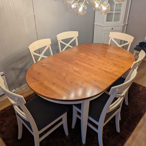 Du kan får med 2 ekstra stoler, men merk at disse desverre har større bruksmerker og slitasje, og er grunnen til lavere pris på hele annonsen :) men om du ønsker å ha med disse også, får du de selvfølgelig med :)