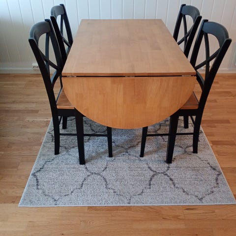 Selger brukt spisegruppe med tilhørende stoler. Selger med 4 stk stoler.