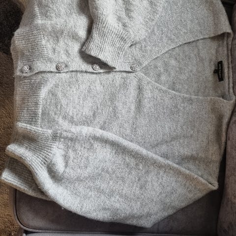 Pent brukt cardigan i merino ull selges billig. Den er brukt kun 2 ganger da den ble kjøpt for stor.