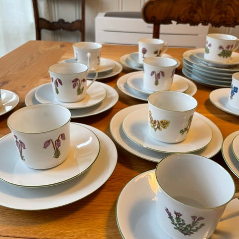 Det er ut til at dette serviset er håndmalt. Jeg har kjøpt det på loppemarked så usikker på opprinnelse. Det er følgende deler: