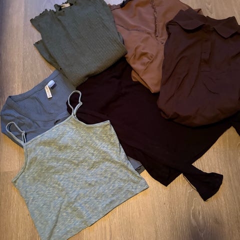 Klespakke med overdeler i str XS, men passer også Small og liten Medium. Fremstår brukt, men mye bruk igjen.
