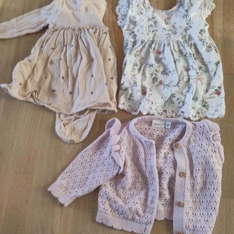 Nydelig Name it kjole og matchende cardigan i strl 62 selges. Brukt i forbindelse med dåp en gang og vasket på finvask. Ingen skader, merknader eller flekker. Selges til 150 kr.