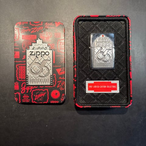 Selger kongen av Zippo, strøken Zippo I helt original eske og Elvis Bling.