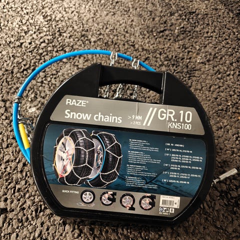 KWB TempoMatic 4x4 snøkjettinger med stålkjettinger og fargede plastdeksler for bedre grep og beskyttelse. Kjettingene er designet for enkel montering og passer til 4x4 kjøretøy. Produktet inkluderer monteringsinstruksjoner og er laget for bruk på vinterføre.