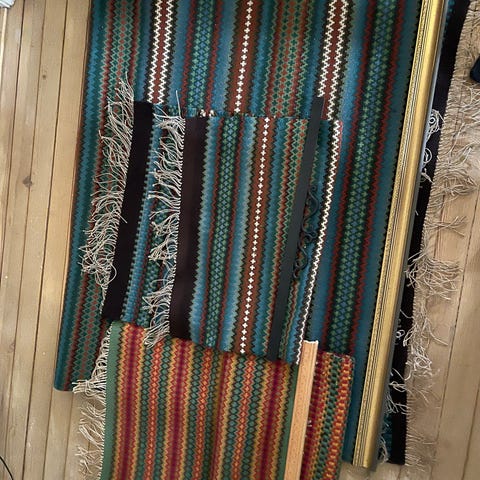 Audhild Vikens jølsteråkle. tre håndvevde tepper i ulike størrelser selges samlet for 3000,-
