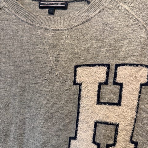 Tommy Hilfiger ull genser i svart farge, størrelse S for kvinner. Genseren har langermet design med rund hals og glidelås bak. Materialet gir en enkel og klassisk stil. Det står str Large men føles mindre til Small str.