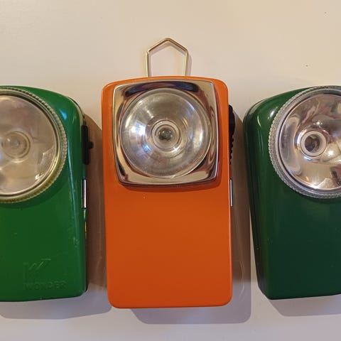 Den grå Philips er ubrukt og nok en av de siste som ble produsert med bruk av 4,5v batteri. Fungerer som den skal