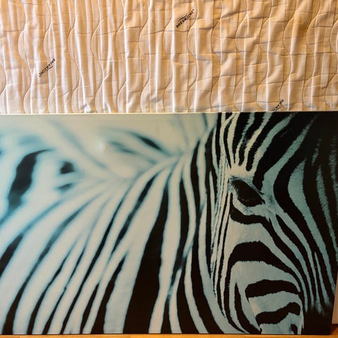 Selger et stort og dekorativt lyddempende bilde med tiger motiv.