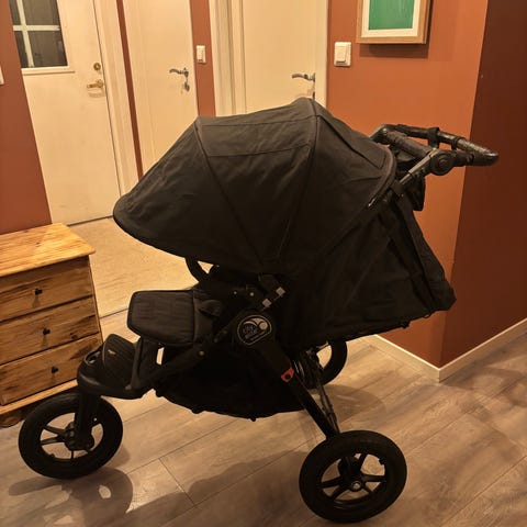 - Justerbar og sikker: Justerbart håndtak, fempunktsele og trinnløs justering av ryggstøtten. Vognen har også en praktisk håndbrems på styret.