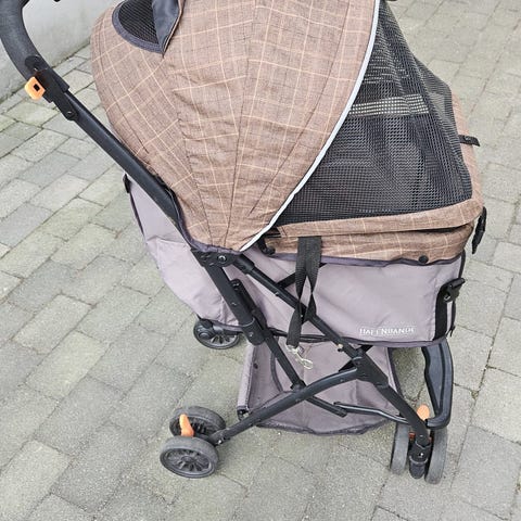 Det er mulig å legge sammen vognen, den har brems, og har hjul som kan pumpes opp ved behov. Brett for å stelle hunden kan enkelt tas av og på ved behov.