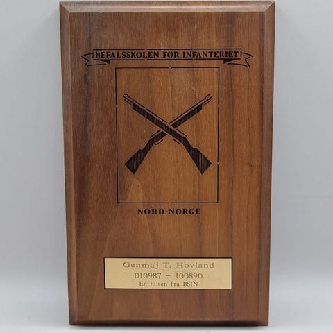 Flott minneplakett fra Befalsskolen for Infanteriet i Trøndelag (BSIT) gitt til Kaptein Roar Jens Haugen 01.08.72 - 01.08.74