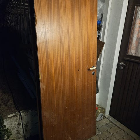 2 dører «vanlig» (uten karm h 204,7, b 72,8) m/ svart håndtak. 1 høyrehengslet, 1 vensvenstrehengslet.