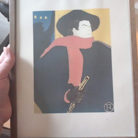 Fargerik reproduksjon av Toulouse-Lautrecs ikoniske plakat Aristide Bruant dans son cabaret (1892).
