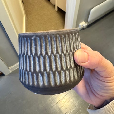 SOLGT: Str M i mørk grå, diameter 29 og høyde 26