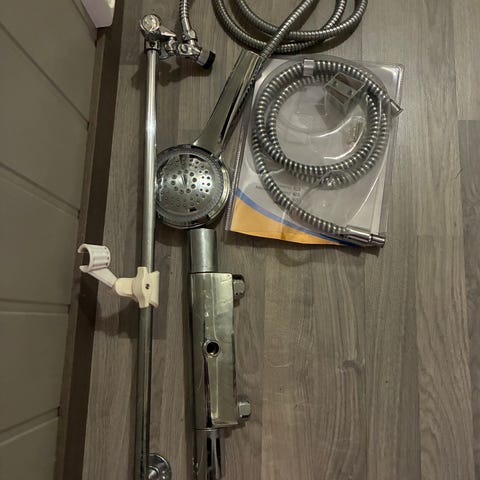 Kona vil ha svarte blandebatterier og selger derfor dette blandebatteriet til kantmontering på badekar. Selges som det er uten noen garanti, men det har vært i bruk frem til nå og fungert fint, hadde en liten periode at det dryppet litt, men ikke de siste ca to årene. Hulldiameter 4 hull min 28 mm max ca 42mm, 1 hull min 36 mm max 48 mm