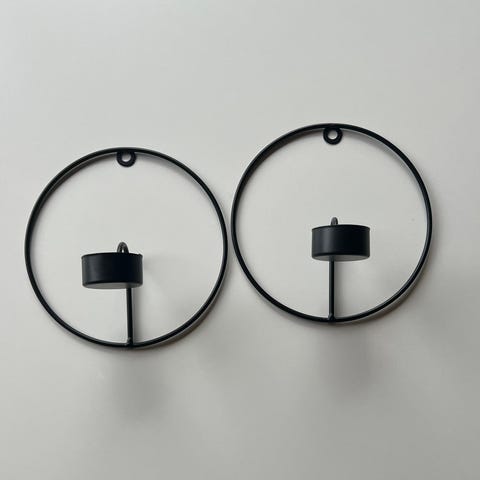 veggmontert lyd/fakkelholder laget i svart metall. Designet for å holde fakler eller lys, egnet for dekorative formål både innendørs og utendørs. Har en enkel og funksjonell utforming med feste for veggmontering. Høyde er 110 cm.