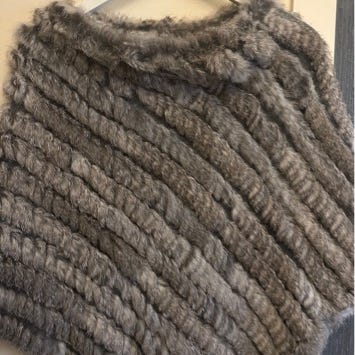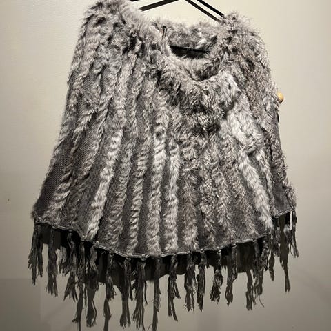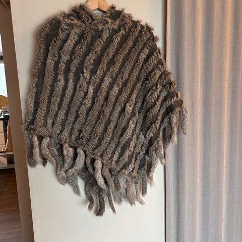 Pent brukt poncho i kaninpels fra Rosenvinge.