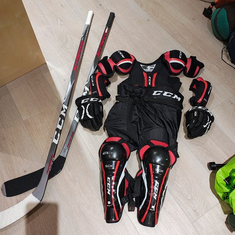 Ubrukt CCM Ishockeyutstyr Komplett Sett Rød Svart Junior