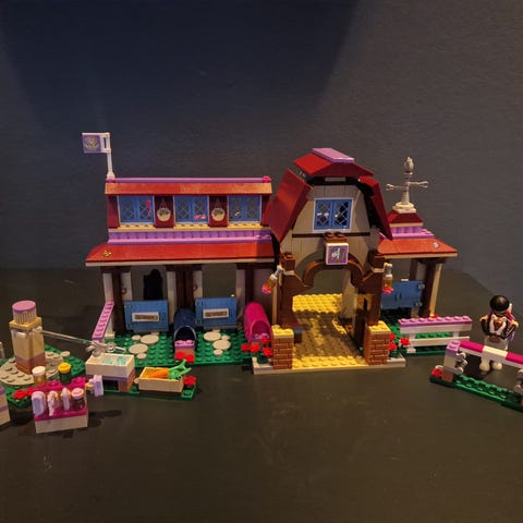 Datteren min føler seg ferdig med lego. Hun har mye forskjellig som nå skal selges.