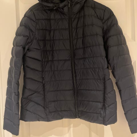 Pen innsvingt modell, passer 36-40 ca. Ingen skader, god kragenogblansjett. To lommer med knapp. Jakke. Oppleves som vind og vannavvisende og er tynn men ganske puffy og varm inforhold til vekt. Oppleves adskillig tykkere enn tilsvarende rimeligere jakker fra Cubus for eksempel. Foret med hvite andefjær.