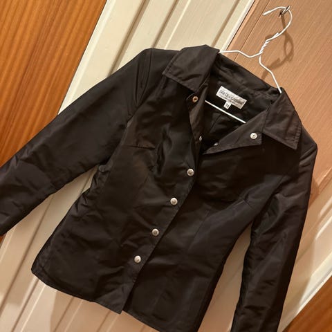 Vintage-blazer fra Dolce & Gabbana. Oppgitt størrelse i plagget er 30/44. Vil tro det tilsvarar medium, men sjekk gjerne selv. Svært lite brukt.