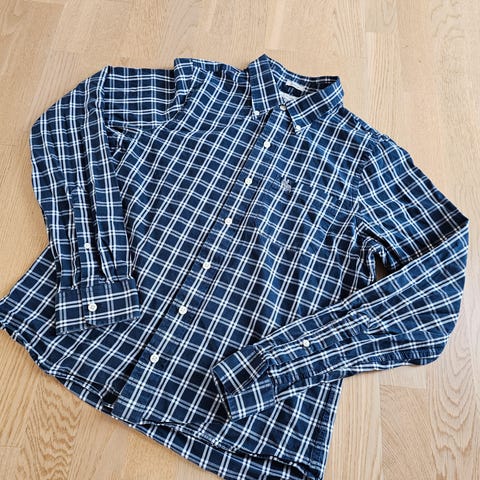 Abercrombie & Fitch skjorte i blå og hvitt. Dette er herre modell med er ganske små i størrelsen, jeg tror det passer bedre til M og er kort i lengden. Kan måle den hvis det trengs.